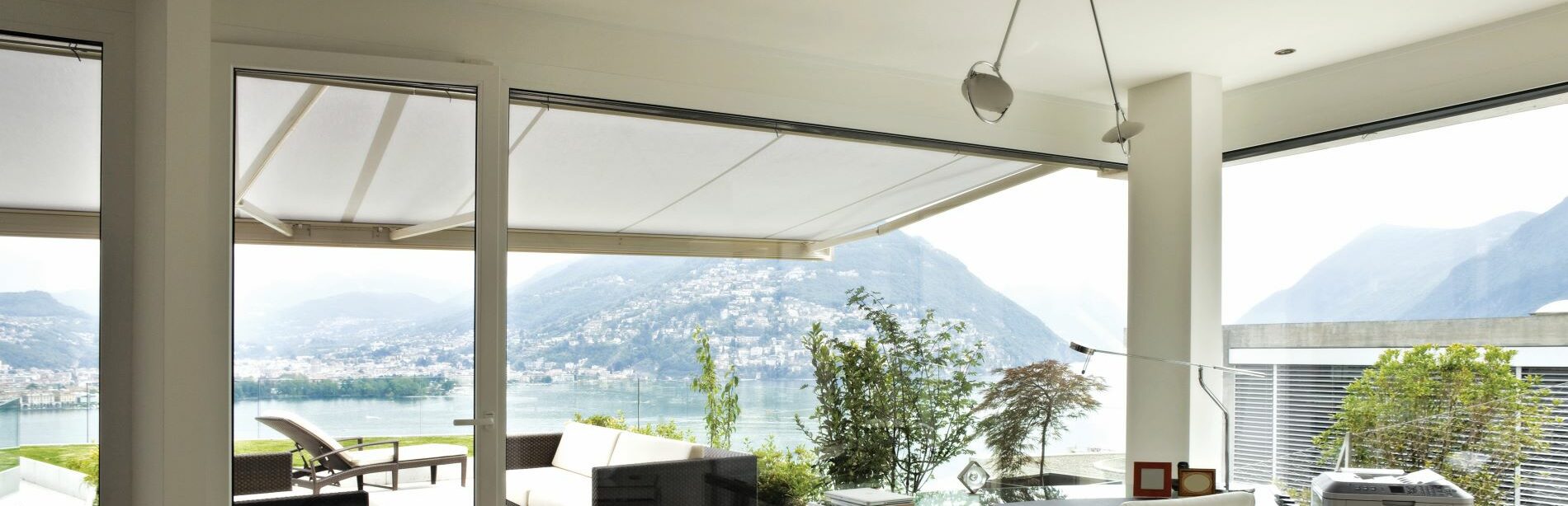 Geïnstalleerd boven terrassen of buitenruimtes, biedt dit scherm schaduw en bescherming tegen direct zonlicht zonder de noodzaak van verticale ondersteuningen.